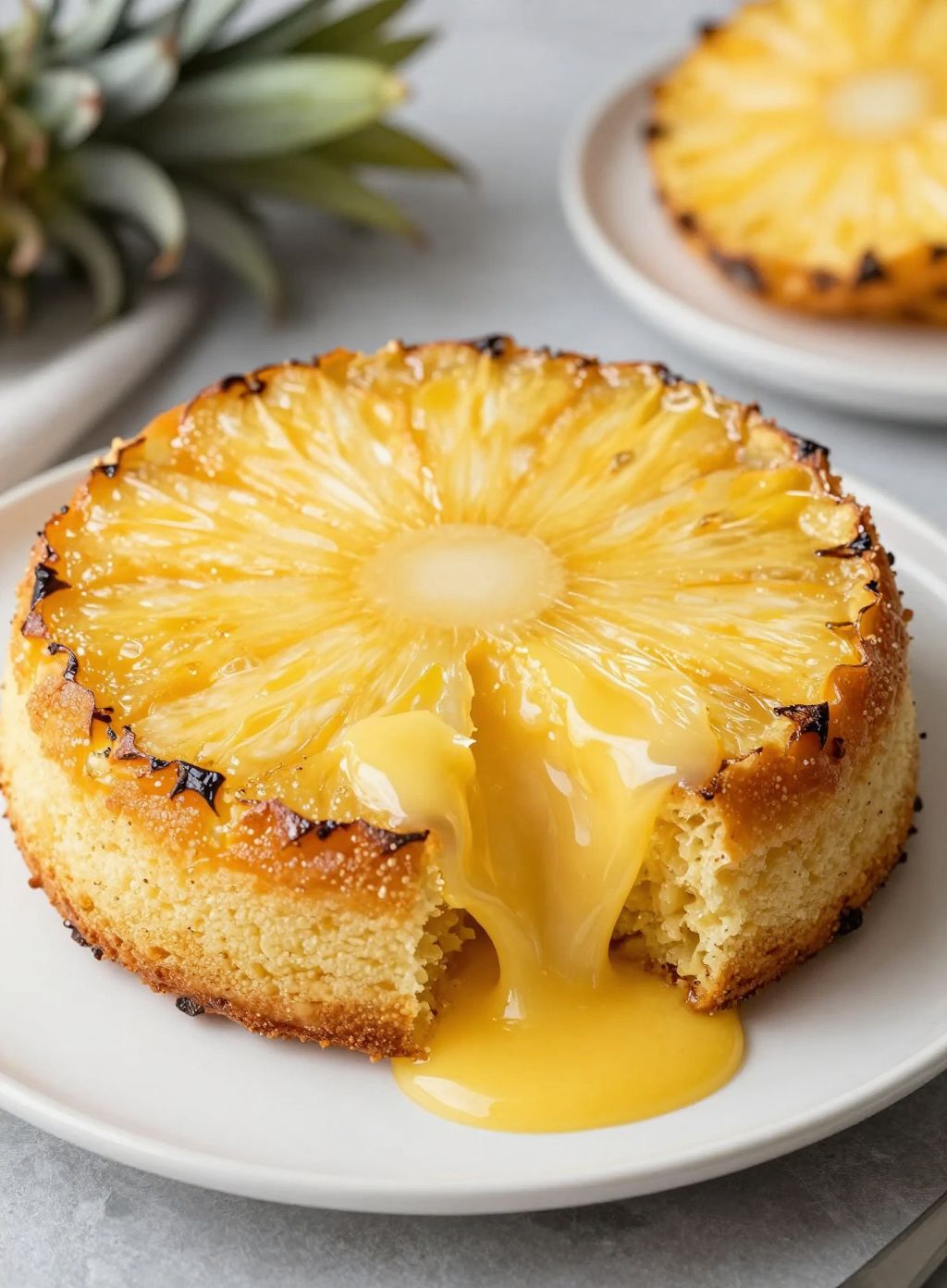 - Golden, Caramelized Pineapple: Sweet and slightly tangy pineapple slices perfectly complement the buttery cake.