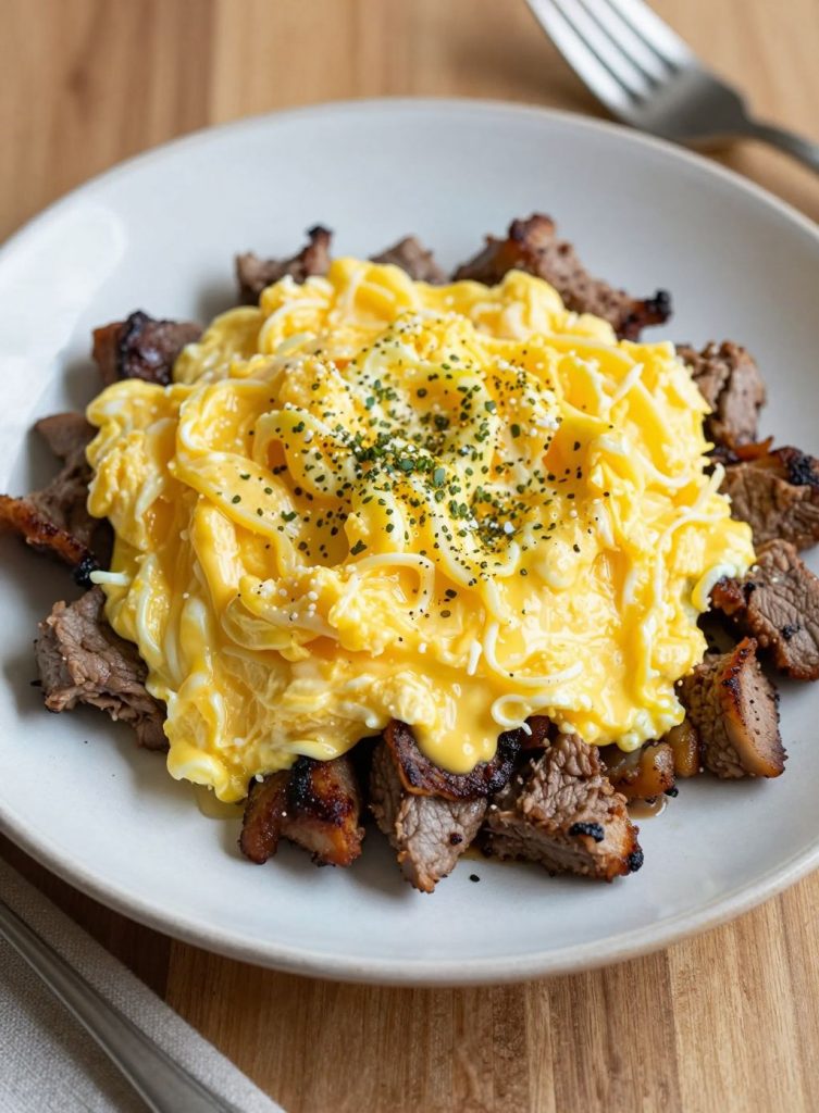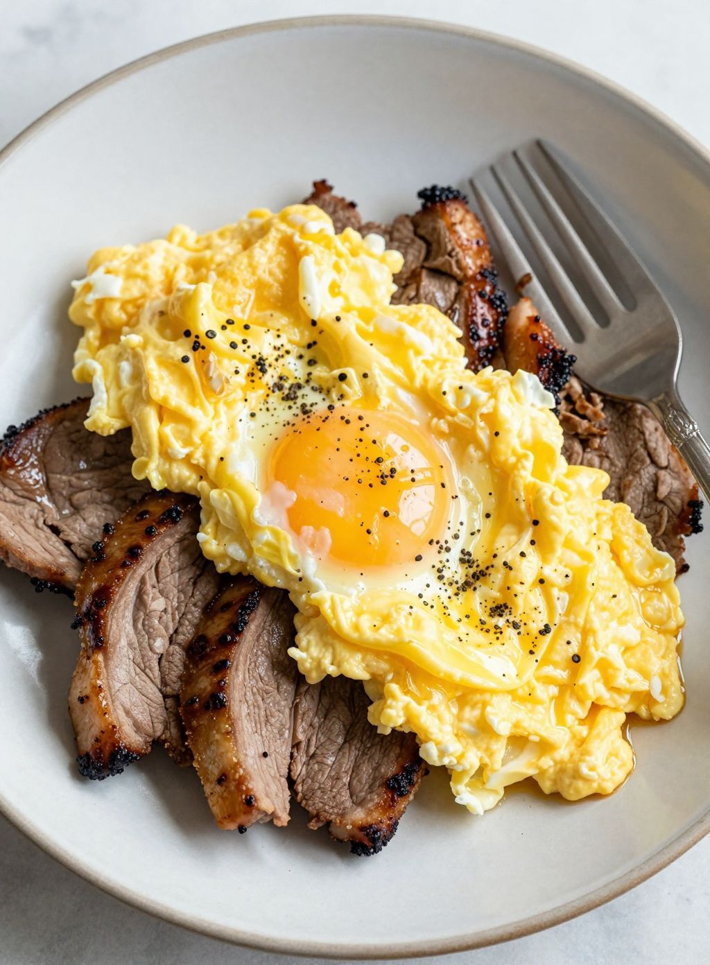 - Serving Style: This scramble is incredibly rich. Serve it over a thick slice of buttered sourdough toast to soak up the savory juices from the meat.